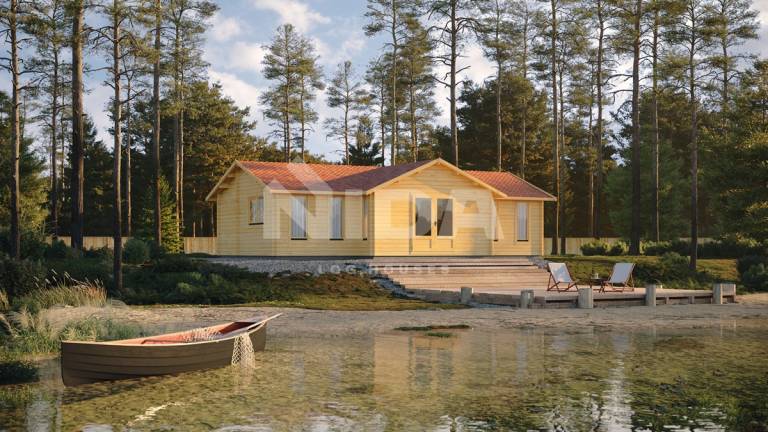 Rosewood Ridge is a truly extraordinary, spacious (covering 49 sq. m of living area) and roomy residential log homes – model. Divided into four separate areas, it provides everyone with their own space for relaxing at the end of the day. Huge windows at the front let the beautiful natural sunlight into the house throughout the day. A sloped roof creates a pleasing architectural structure.